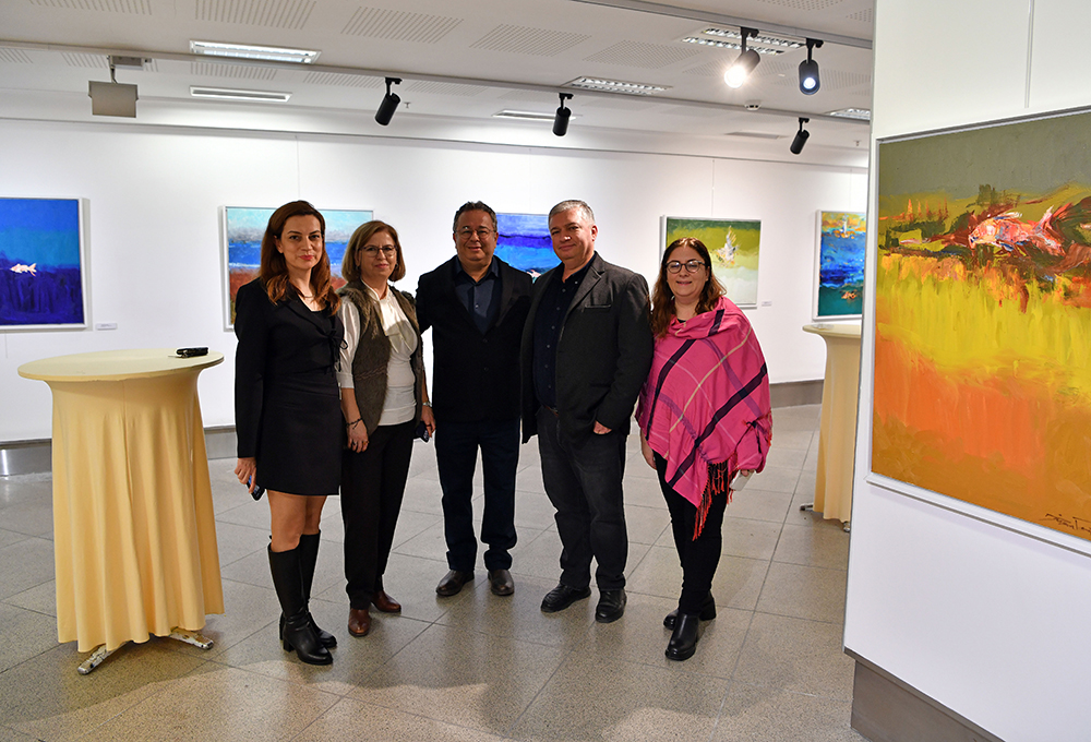 Güzel Sanatlar Uygulama ve Araştırma Merkezi (GSUAM) tarafından düzenlenen serginin açılış konuşmalarını Mütevelli Heyet Başkanımız Dr. Bahar Akıngüç Günver, Rektörümüz Prof. Dr. Fadime Üney Yüksektepe, Sanat ve Tasarım Fakültesi Dekanımız Prof. Dr. Mehmet Üstünipek ve Ressam Prof. İhsan Doğrusöz yaptı. Açılış konuşmalarında, sanatın insanın içsel yolculuğuna tuttuğu ışık ve denizin sanatçı üzerindeki dönüştürücü etkisi vurgulandı.